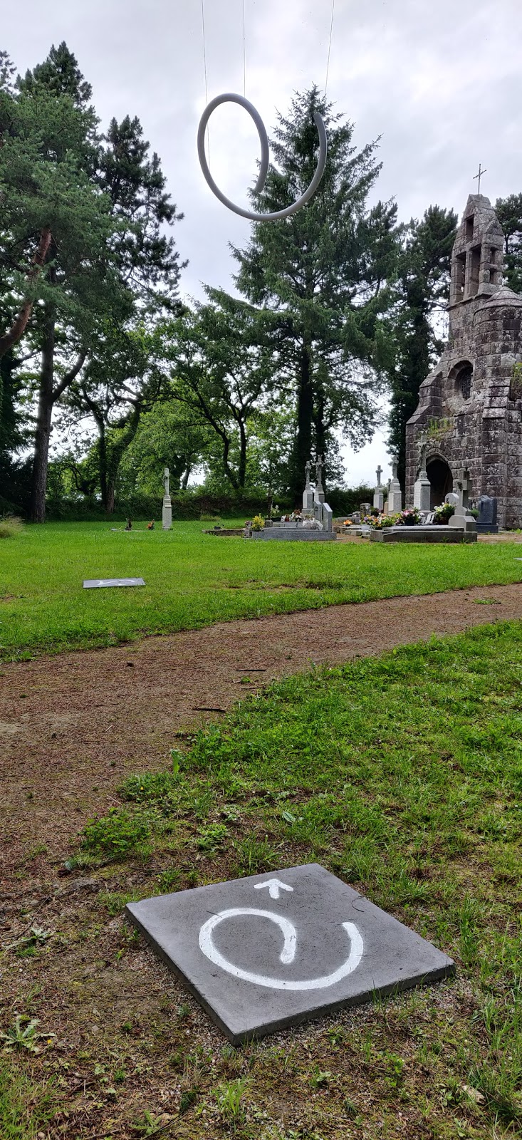 Перед часовней повесили вот такую штуковину. Такое глубоко философское произведение. Если встать на плитку с "буквой", с ней эту штуковину видно именно так.